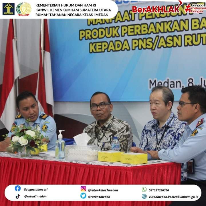 Kegiatan ini merupakan sosialisasi antara pihak PT TASPEN dan Bank Woori Saudara mengenai manfaat produk perbankan bagi ASN khususnya di lingkungan Rutan Kelas I Medan yang diadakan di Aula Saharjo, Kamis, (08/06/23).