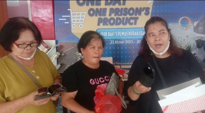 Sementara di lokasi yang sama, Mery Ana boru Silaban ( 53), warga Desa Tj Gusta Dusun IV Barat B, Kabupaten Deli Serdang, dan rekanya Lenta boru Napitupuluh( 67) warga Jalan Toba Permai, Gang Toba Nauli, serta Doharma boru Situmorang(53) warga yang sama, mengatakan sangat puas membeli produk sendal wanita buatan karya tangan ketrampilan WBP Rutan Klas 1 Medan ini, harga terjangkau kita bertiga puaslah pokoknya, rekan kita juga tadi pesan juga satu buah panggangan,kita liat melalui medsos ada kegiatan ini, ngk rugi puaslah belanja produk hasil binaan pelatihan bapak – bapak pegawai Rutan ini, ” ujarnya sambil merasa senyum puas.