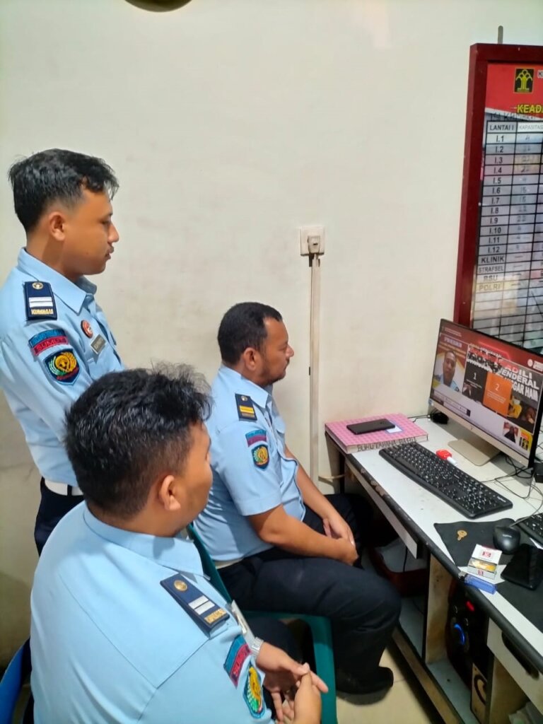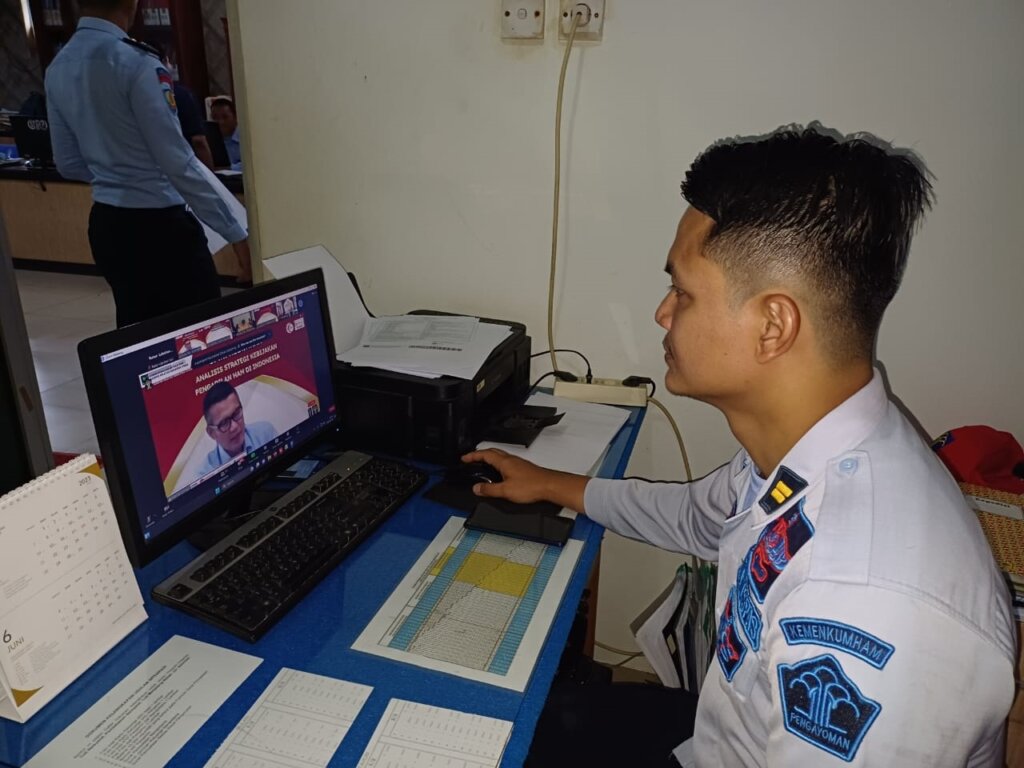 Jajaran Rumah Tahanan Negara (Rutan) Kelas I Labuhan Deli Kanwil Kemenkumham Sumut mengikuti Opini (Obrolan Peneliti) terkait Analisis Strategi Kebijakan Pengadilan HAM di Indonesia secara Virtual Zoom. Senin (08/05)