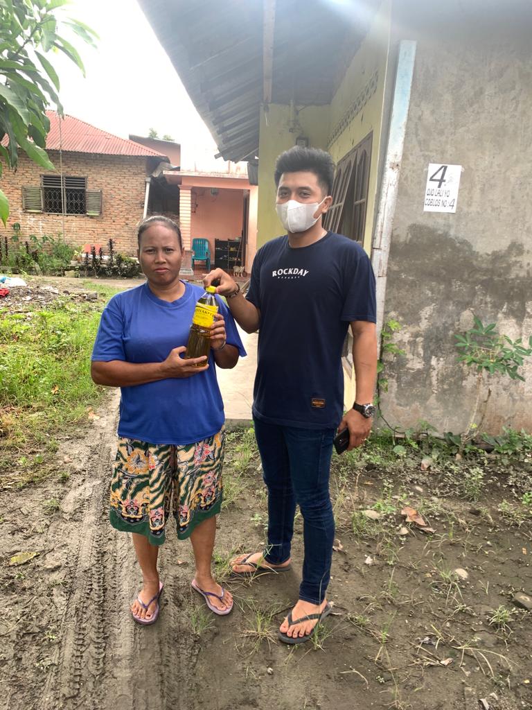 Bansos yang dibagikan Satres Narkoba Polresta Deli Serdang yakni 50 paket sembako berupa Beras dan Minyak Goreng.