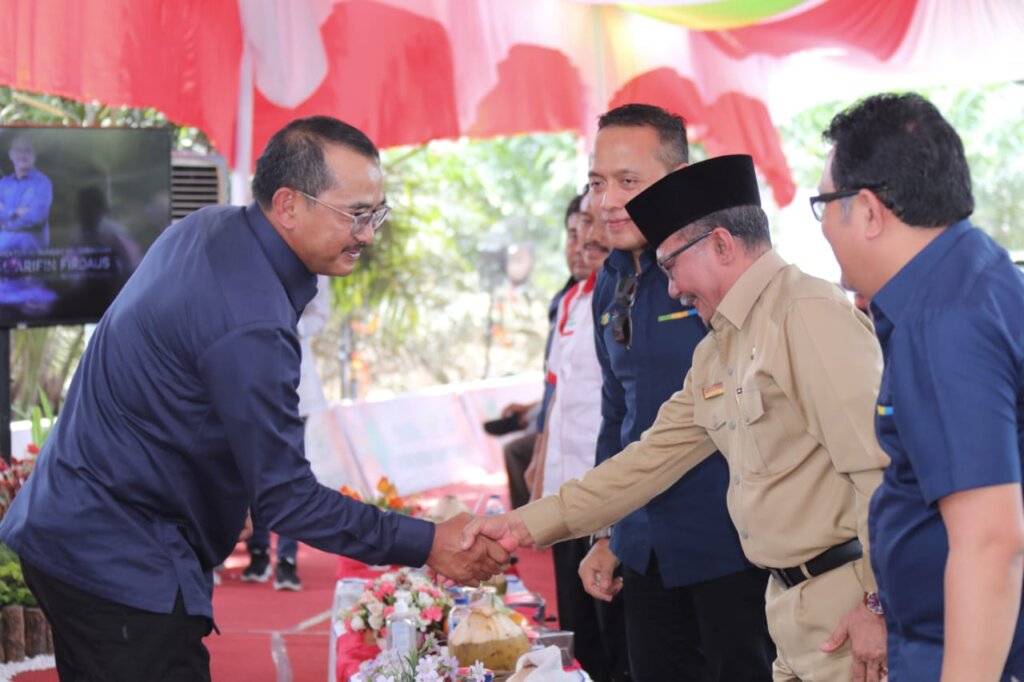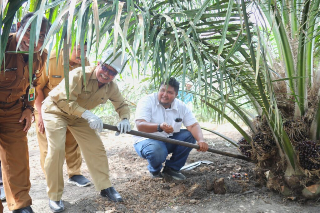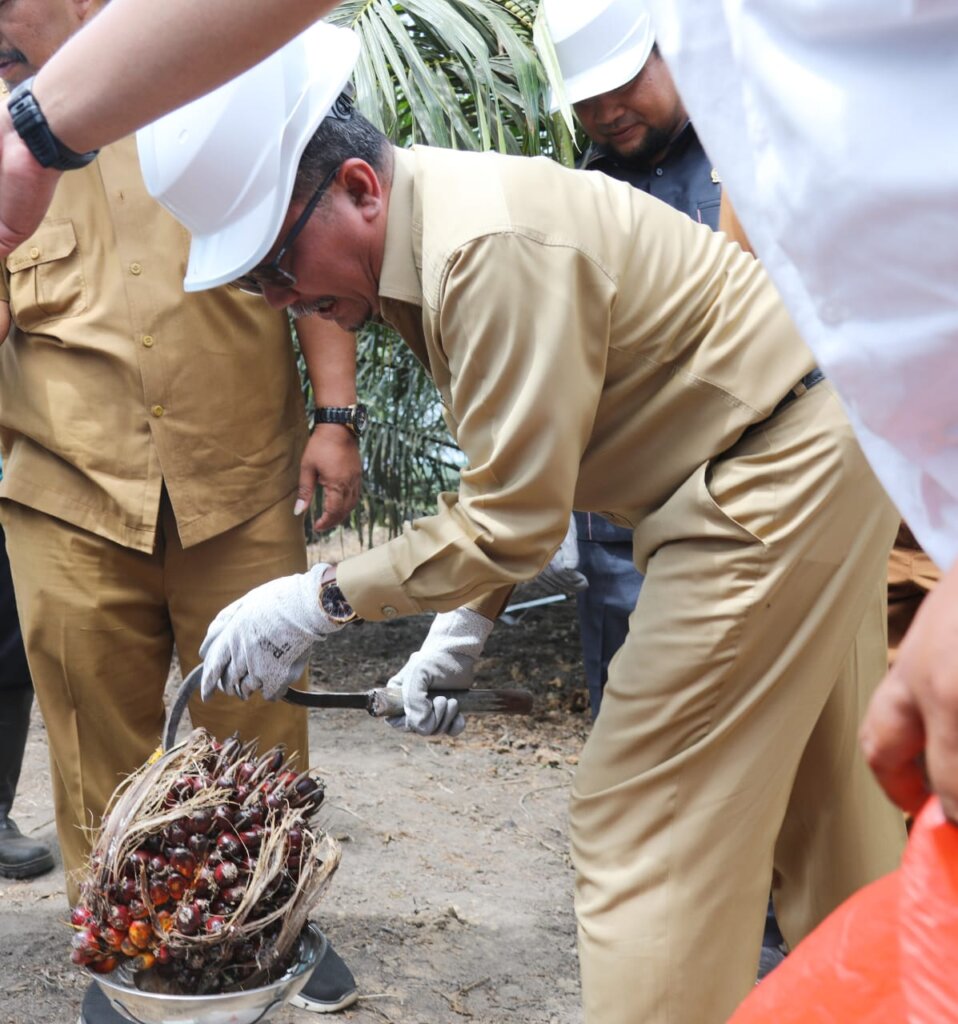Sekretaris Daerah Kabupaten Siak Arfan Usman, menghadiri acara Panen Perdana Program Peremajaan Sawit Rakyat (BPS), Kebun Plasma PTPN V, di KUD Tunas Muda, Kampung Teluk Merbau, Kecamatan Dayun, Senin (19/6/2023).