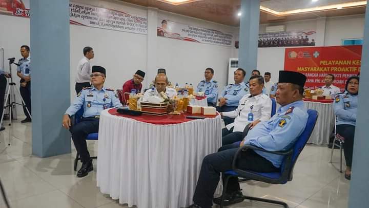 Hadir secara virtual Kepala Divisi Pemasyarakatan Rudy Fernando Siantury, turut hadir secara langsung Kepala Lembaga Pemasyarakatan Kelas I Medan Maju Amintas Siburian, Kepala Bidang Pelayanan Tahanan, Kesehatan, Rehabilitasi, Pengelolaan Benda Sitaan, Barang Rampasan Negara, dan Keamanan Kriston Napitupulu dan Kepala Satuan Kerja Pemasyarakatan Medan Sekitar.