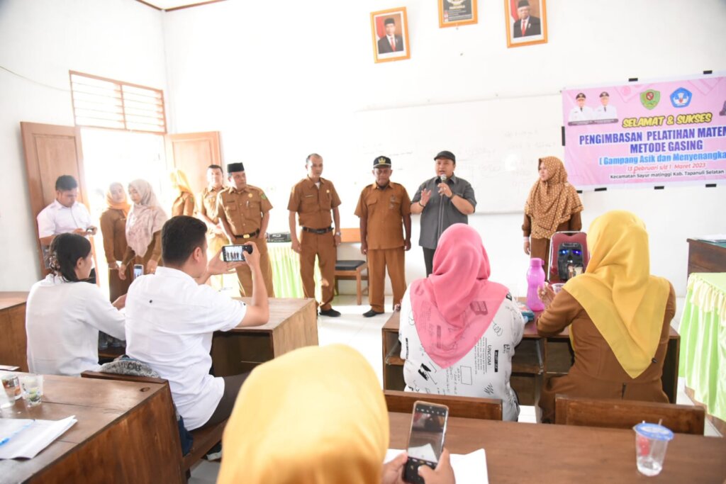 Dukung peningkatan jumlah guru dan siswa mahir berhitung dengan metode ‘Gasing’ (Gampang Asik dan Menyenangkan), di Tapanuli Selatan, Bupati Dolly Pasaribu, tinjau tempat pelatihan di SD Negeri 101105 Kecamatan Sayur Matinggi pada Senin (27/2).