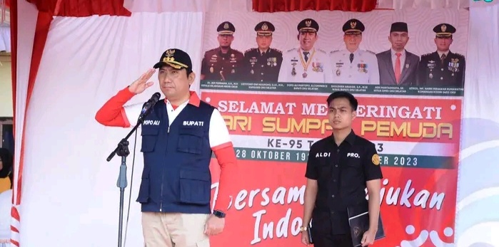 BPR RANAU TENGAH – Bupati Ogan Komering Ulu Selatan (OKUS), Popo Ali Martopo, B.Comm., bersama Wakil Bupati Ogan Komering Ulu Selatan (OKUS), H. Sholehien Abuasir, S.P., M.Si., laksanakan rangkaian Peringatan Hari Sumpah Pemuda (HSP) Ke 95 Kabupaten OKU Selatan Tahun 2023, Sabtu (28/10/2023).