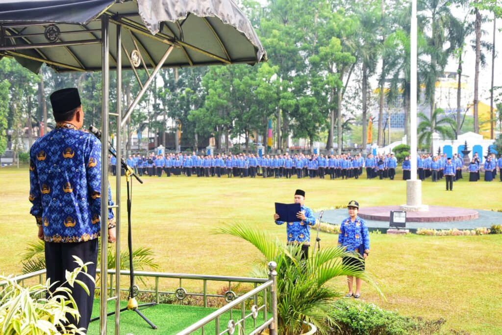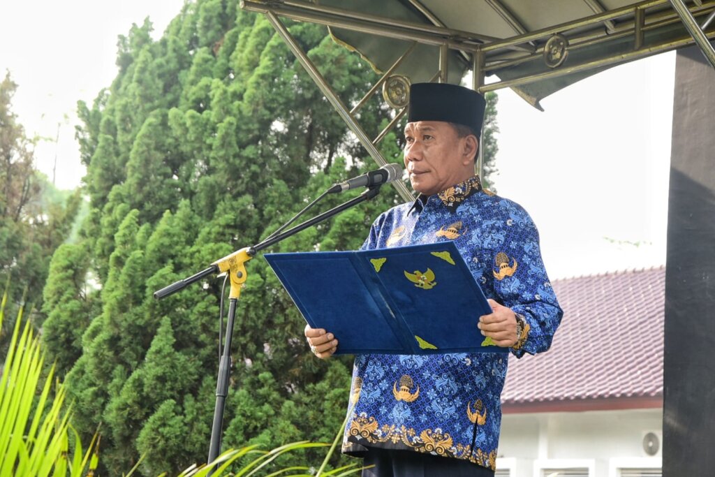 Bupati Deli Serdang, H Ashari Tambunan memimpin Upacara Hari Kesadaran Nasional di halaman Kantor Bupati Deli Serdang, Senin (17/4/2023).