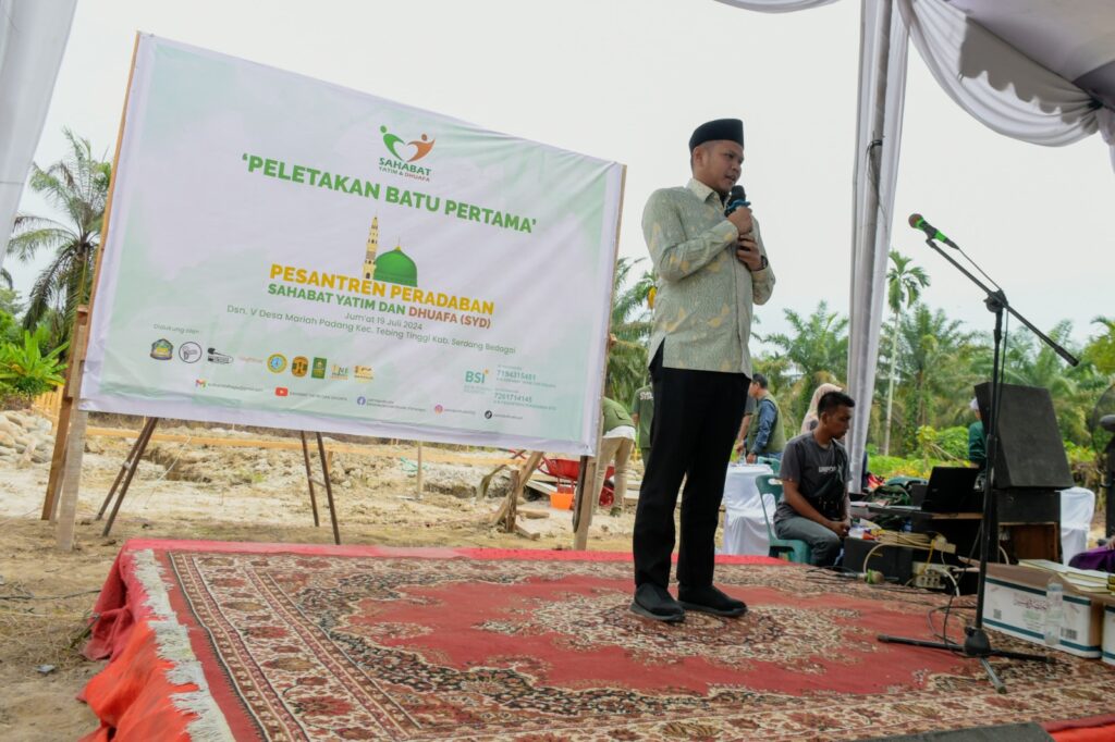 Tebing Tinggi-Genews,tv.id Wakil Bupati Serdang Bedagai (Wabup Sergai) Adlin Tambunan, Jumat (19/7/2024) menghadiri Peletakan batu Pertama Pembangunan Pesantren Peradaban Sahabat Yatim Dan Dhuafa (SYD) di Dusun V Desa Mariah Padang Kecamatan Tebing Tinggi.