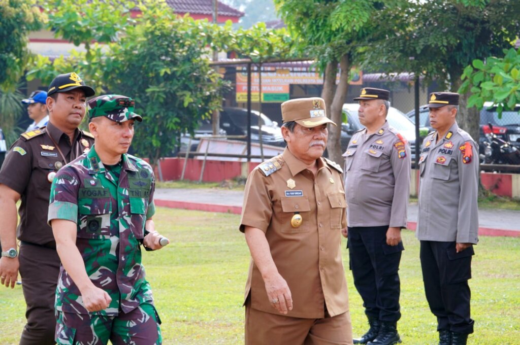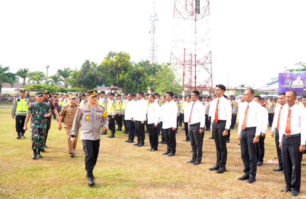 Wakil Bupati (Wabup) Deli Serdang, HM Ali Yusuf Siregar mengikuti Apel Gelar Pasukan Operasi Ketupat Toba 2023 di di Lapangan Mako Polresta Deli Serdang, Senin (17/4/2023).