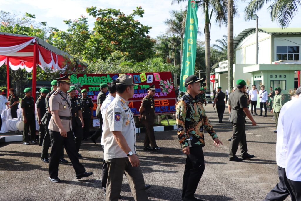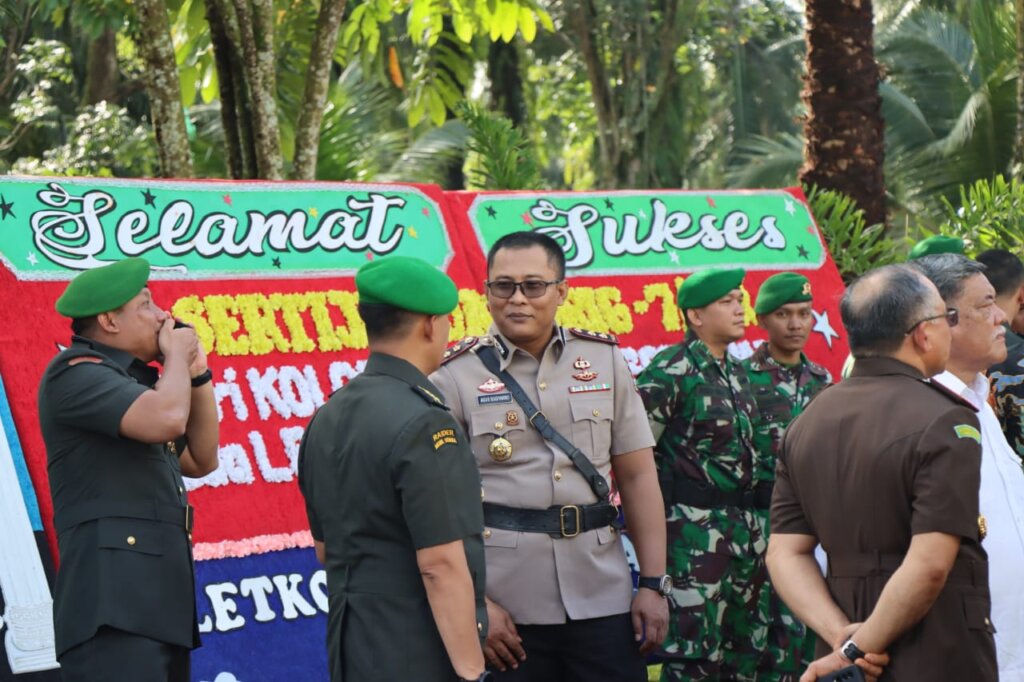 Sebagai wujud Soliditas dan Sinergi TNI-Polri, Kapolresta Deli Serdang Kombes Pol Irsan Sinuhaji, SIK, MH yang diwakili oleh Wakapolresta Deli Serdang AKBP Agus Sugiyarso, SIK, MH menghadiri Upacara Serah Terima Jabatan Komandan Brigif 7/Rimba Raya dari Kolonel Inf Gede Setiawan kepada Letkol Inf Nur Wicahyanto, SE yang di laksanakan di Mako Brigif 7/Rimba Raya di Jalan Bandar Kwala Kecamatan Galang Kabupaten Deli Serdang, Sumut, Rabu (25/01/2023)