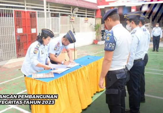Pencanangan Pembangunan Zona Integritas ini bertujuan untuk menyatukan pandangan seluruh pegawai dan berkomitmen secara bersama-sama dalam mewujudkan Rumah Tahanan Negara yang memperoleh predikat WBK/WBBM 2023. Karutan, Erwin F. Simangunsong juga berharap agar seluruh pegawai tidak lelah dan terus semangat dalam meningkatkan mutu pelayanan baik kepada masyarakat maupun Warga Binaan, demi tercapainya predikat WBK/WBMM.